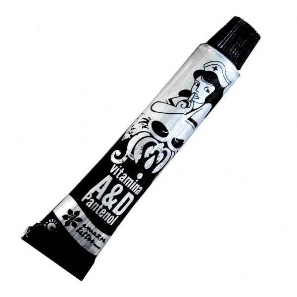 A Vitamina A&D Pantenol é um composto de pró Vitaminas A e D, Pantenol e outros agentes que mantém a umidade natural da pele, de secagem rápida e sem deixar a pele oleosa. Favorece a hidratação profunda, rápida cicatrização, alívio imediato da dor e, com o uso contínuo, também tem poder revitalizante, realçando as cores e renovando o brilho da tatuagem, além de previnir o desbotamento. A pomada Vitamina A&D é um poderoso aftercare para tatuagem, altamente recomendado para venda em seu estúdio, dando assim total segurança a seu cliente, que terá um produto de qualidade para cuidar da tattoo.