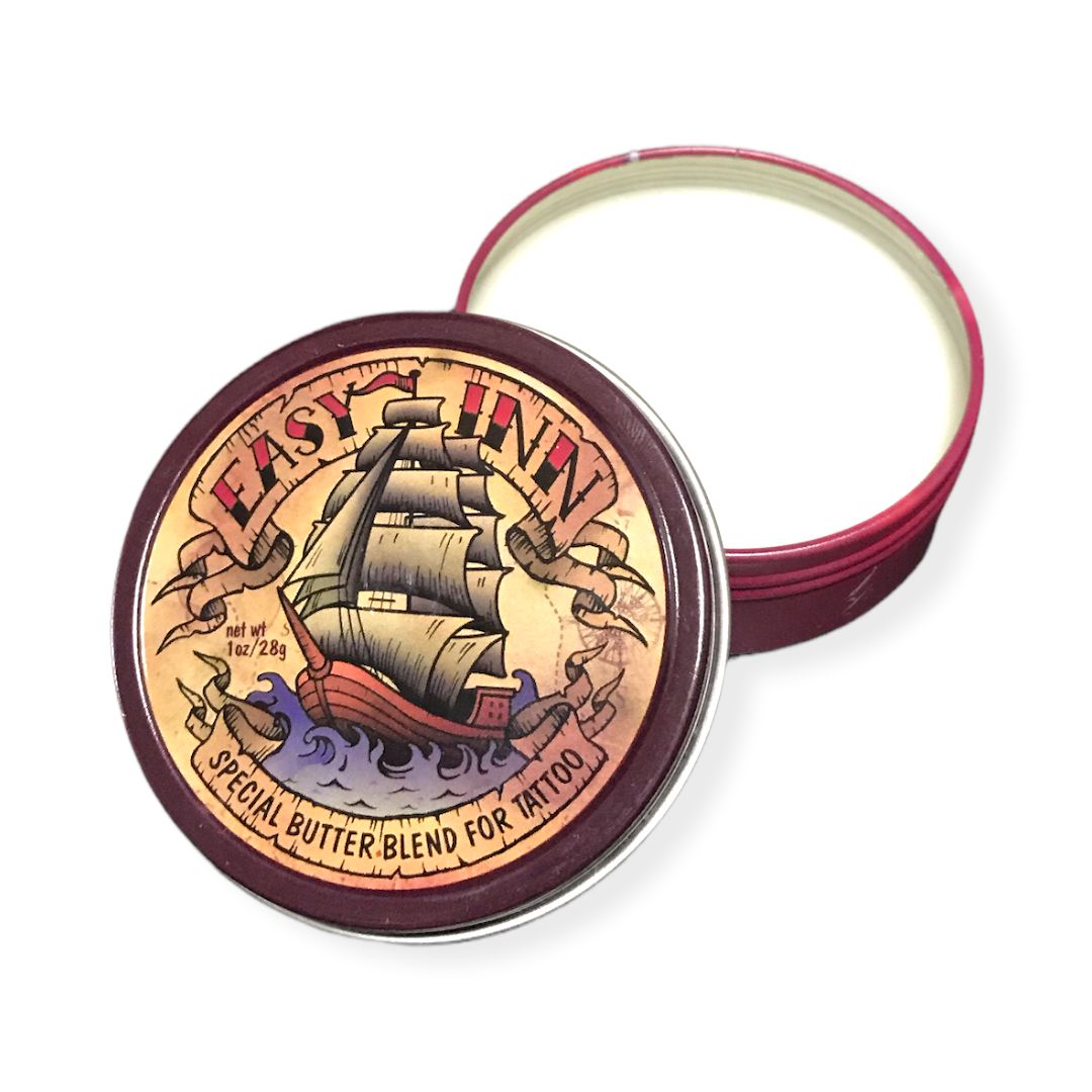 Especialmente desenvolvida para ser aplicada na pele antes, durante e depois do procedimento da tatuagem, a Easy Inn é formulada a partir de um mix de três manteigas naturais, com características compatíveis com a pele humana, que suavizam a introdução da agulha, reduzindo o trauma da pele. A combinação das propriedades emolientes e regenerativas das manteigas de cupuaçu, cacau e karitê - ricas em fitoesteróis e triglicerídeos - diminui a irritação e o inchaço da pele, auxilia na sua regeneração e acelera o processo de cicatrização. É, sem dúvidas, uma das melhores manteigas do mercado.
